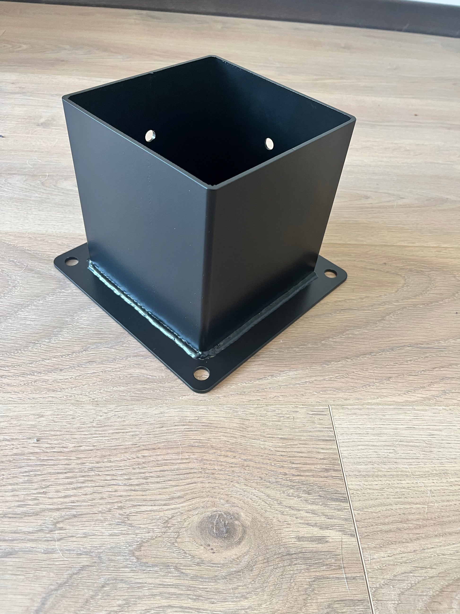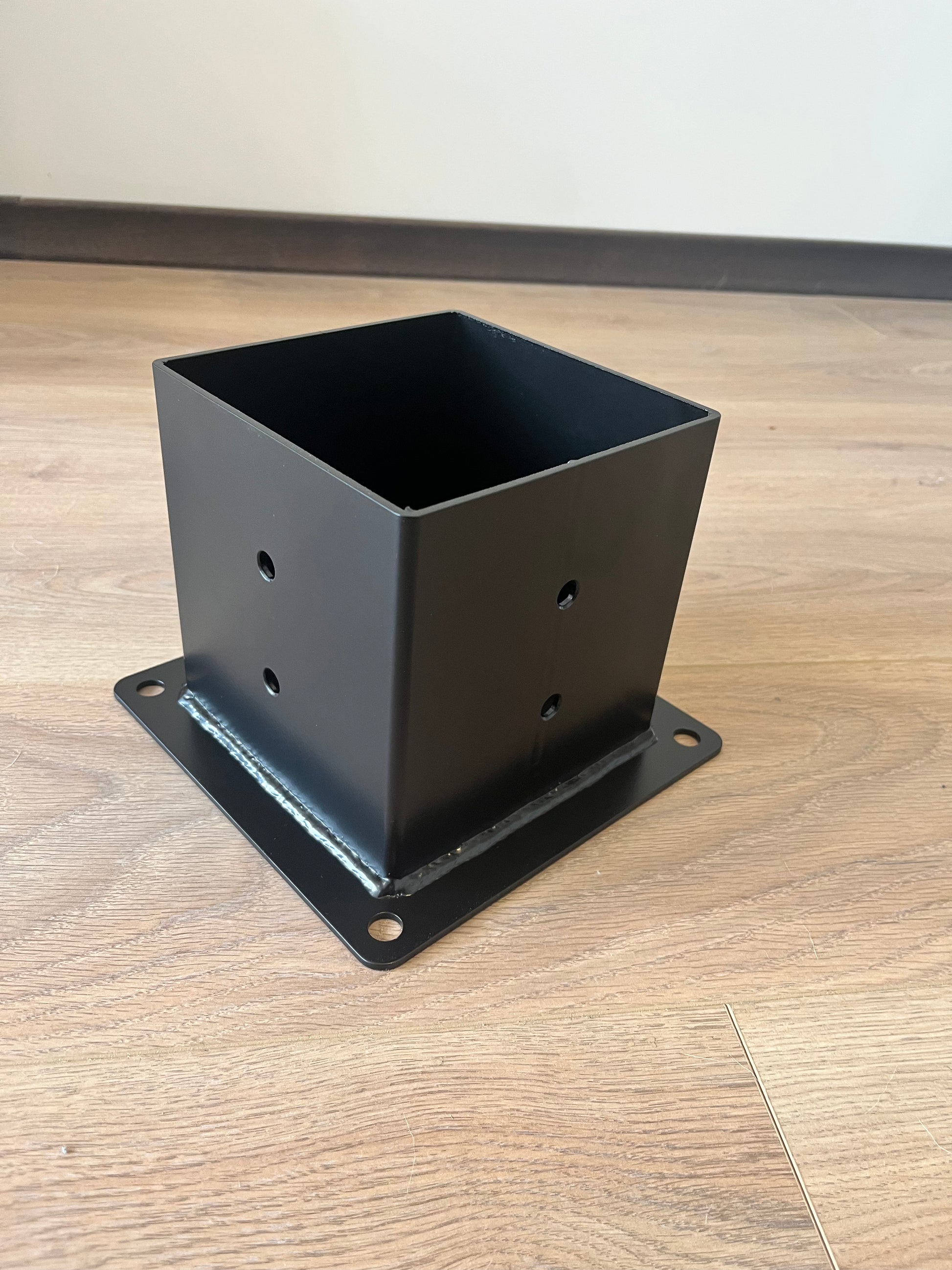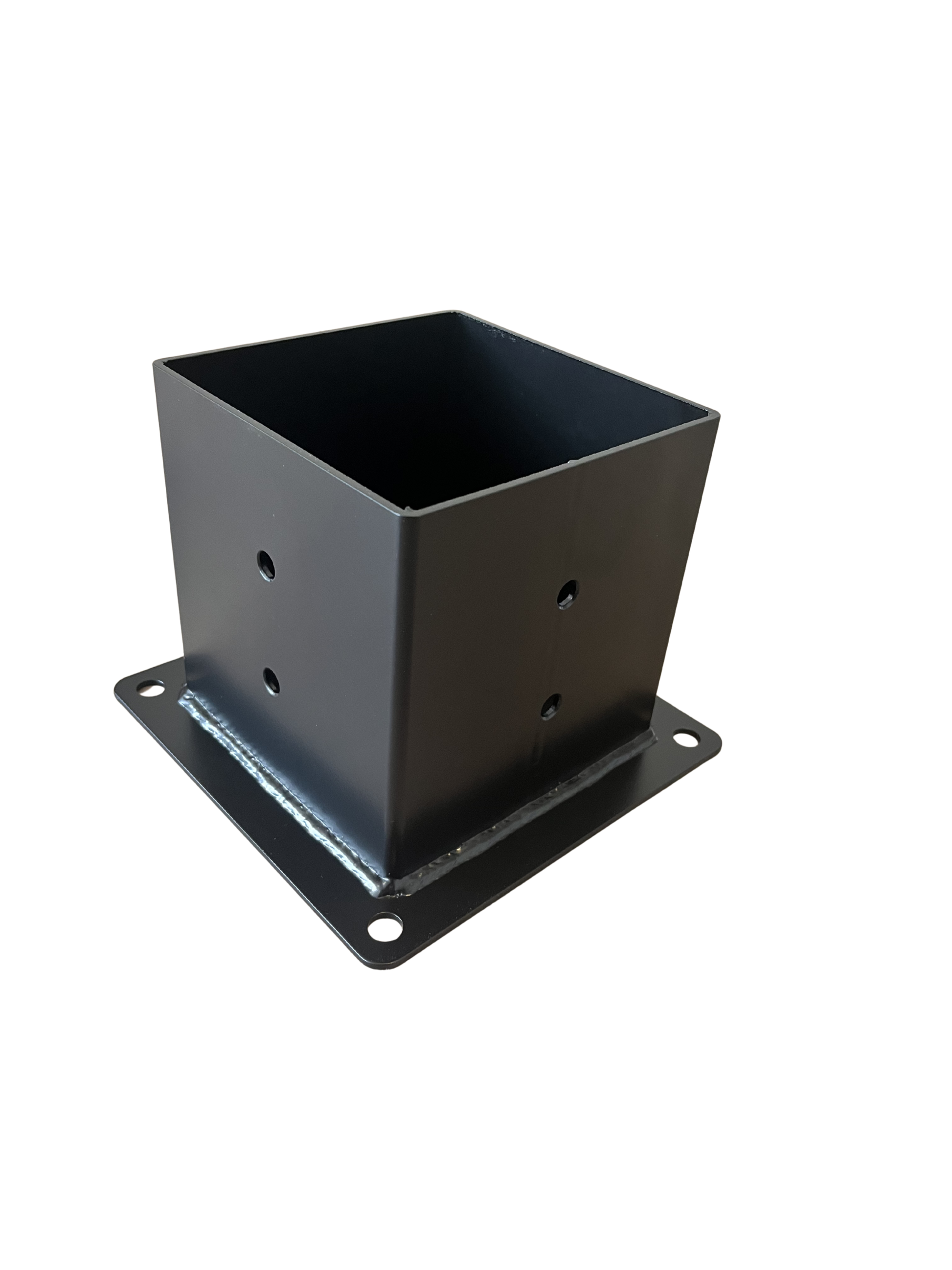 Staba pamatne jeb brusu kurpes stiprinājums. Tas ļauj piestiprināt konstrukciju pie virsmas. Apakšā ir četri caurumi, kas ļauj piestiprināt pergolu/nojumi pie terases, betona, bruģa vai jebkuras citas izvēlētas virsmas, kā arī urbums pa vidu ļauj stiprināt brusu kurpi pie skrūvpāļiem.